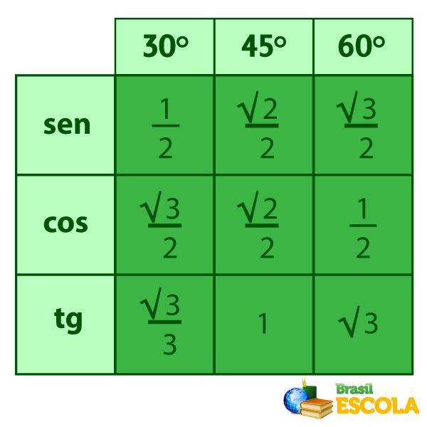Durante o estudo dessas razões trigonométricas, surge o que chamamos de ângulos notáveis. Os ângulos notáveis são ângulos comuns em problemas matemáticos, e os valores do seno, cosseno e tangente devem ser conhecidos.